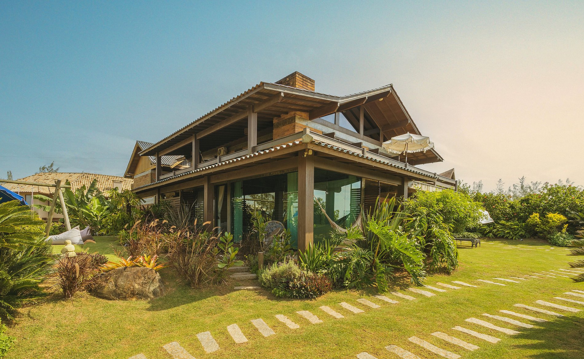 Aproveite o por do sol da varanda, do jardim ou do deck da praia, logo em frente a casa, as cores do ceu e do mar ficam incriveis nesta hora.