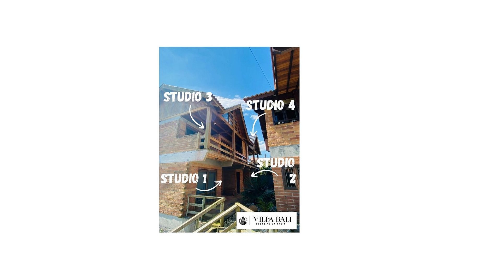 A Villa Bali fica numa propriedade a beira mar, na casa anexa a casa da frente. Possui 2 studios superiores e 2 no térreo, todos disponíveis para locação. Os studios são uma delicia, com espaços amplos e arejados, e vista para o mar. A construção é muito interessante com madeira de demolição e pedra, o que garante aconchego e também conforto térmico. O pátio tem uma vista privilegiada do sol nascente e do por do sol, a passarela aqui na frente transpõe as dunas e tem vistas incríveis e no inverno é ponto de observação das baleias!